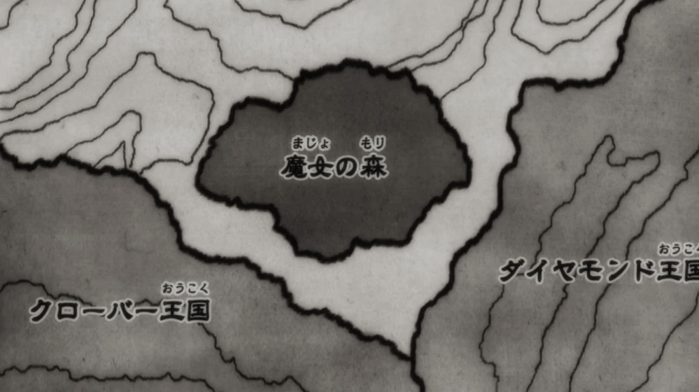 Ведьмин лес - маленькая независимая страна, расположенная между Алмазным Королевством и Клевером. Проживают там, как бы это очевидно не звучало, исключительно ведьмы. По форме правления – абсолютная монархия, с могущественной и несменяемой Королевой Ведьм во главе государства. Политический режим – тоталитаризм. Интересна данная локация не только образом жизни её обитателей, но и своей уникальной магией, выходящей порой за рамки понимания.