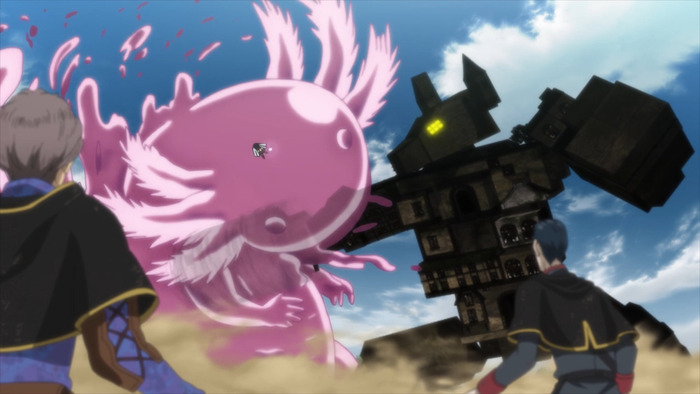 После завязки следует поговорить и о сюжете как таковому. Если рассматривать всю историю целиком, то сразу можно обратить внимание на её плавный переход от более камерного повествования, охватывающего в основном членов отряда «Черный бык» и их окружение, к масштабам всего Королевства Клевера и не только. Сам ввод зрителя выполнен весьма грамотно. Нас последовательно ведут по пути от захудалых деревушек, перерастающих в города, до окрестностей столицы. Плюс ко всему, по мере раскрытия мира, мы знакомимся и с другими достаточно любопытными локациями: Подводный Храм, Ведьмин Лес, таинственные подземелья и так далее. К сожалению, им уделяется не так много времени, о чем я ещё не раз посетую в своей рецензии.