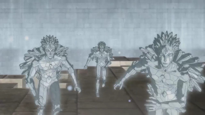 В сравнении с мангойВ аниме представлено огромное количество разнообразных персонажей, причём большая часть из них с поистине превосходным и выразительным дизайном. Даже не могу представить, сколько ушло времени и сил на столь колоссальный труд, так как даже некоторые третьестепенные имеют яркие и запоминающиеся образы. Тем не менее даже тут есть свои недочёты, которые, впрочем, связаны не столько с дизайном, сколько с их анимацией и просто внешним видом в определённых сценах. Когда персонажи стоят неподвижно или просто на заднем плане, порой наблюдаются не только кривые пропорции тела, но и буквально другие элементы внешности. Иногда данная проблема добирается и до переднего плана, как, например, это было с Астой при его клонировании Гошем. Если говорить про сами задники, то выглядят они вполне неплохо. Всё-таки стоит учитывать, что это многосерийный сёнэн, а не какой-нибудь полнометражный фильм. Но всё равно не могу не отметить, что порой бросалась в глаза их чрезмерная однотипность. Особенно это было заметно во время сражений внутри пещер.