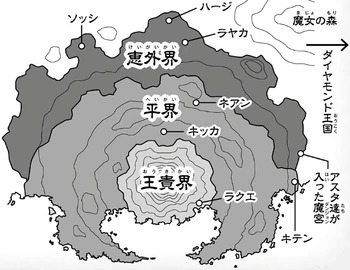 Алмазное Королевство расположено к востоку от Королевства Клевера и представляет для него главную угрозу. Страна крайне бедна на природные ресурсы, поэтому вынуждена проводить агрессивную политику в отношении своего соседа, имеющего их в достатке. В связи с этим вся внутренняя экономика государства заточена под развитие военного ремесла и укрепление армии.
