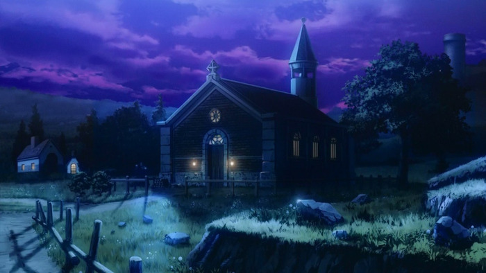 1) Лично для меня именно стартовый опенинг сильнее всего повлиял на первое впечатление от сериала. И не только потому, что смог задать отличный темп для начала истории. Благодаря своему превосходному визуальному наполнению, он замечательно передал настроение предстоящих событий и привлёк тем самым всё внимание к монитору. Кроме того, сама постановка кадров и некоторых сцен оказалась настолько хорошо срежиссирована, что непроизвольно вызывала мурашки по всему телу. Особенно впечатлило, как поработали с Ноэль, сумев всего лишь за каких-то пару несчастных секунд передать всю глубину её внутренних переживаний. Так же хочу отметить отличную идею отобразить второстепенных персонажей на страничках гримуара. Получилось не только стильно, но и со смыслом.