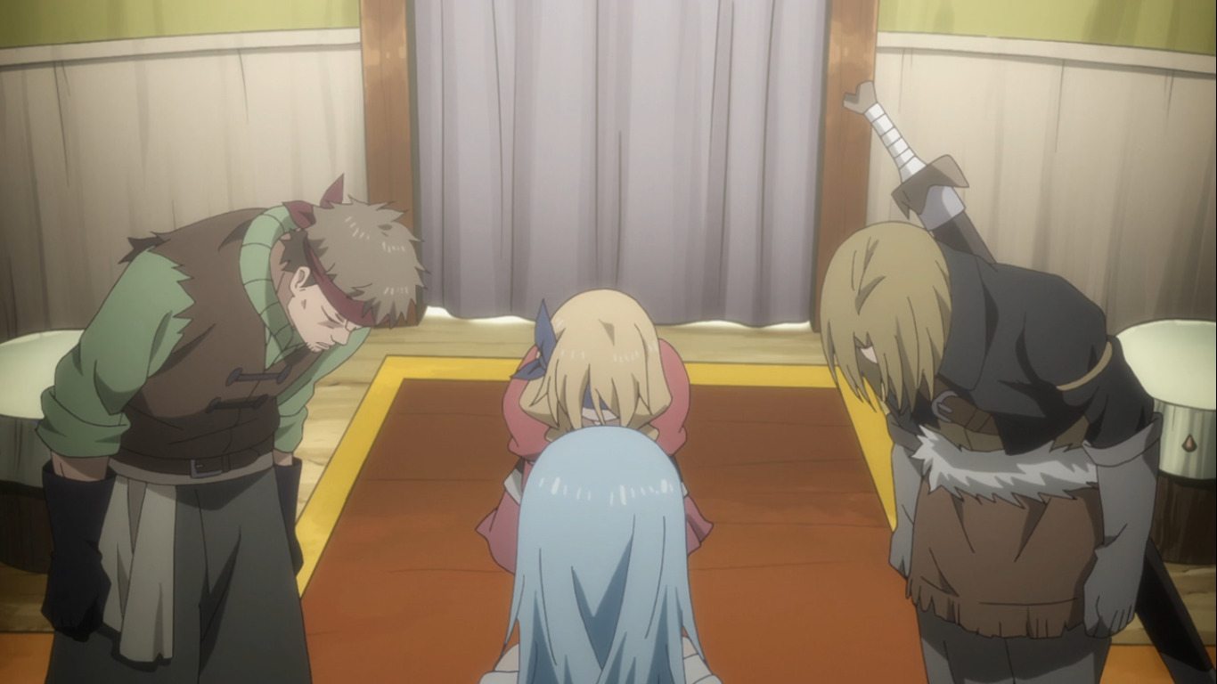 К слову, отношения между гильдмастером Фьюзом (на втором скрине) и авантюристами во многом схожи на отношения японских начальников и подчинённых, хоть и больше в комедийном ключе, типа постоянные жалобы, что начальник их загоняет, но они такие ответственные, поэтому не могут отказаться (кстати, тоже самое и в Убийце гоблинов, к тому же там уже есть и традиционные японские попойки и недоверие к ГГ, выделяющемуся из коллектива).