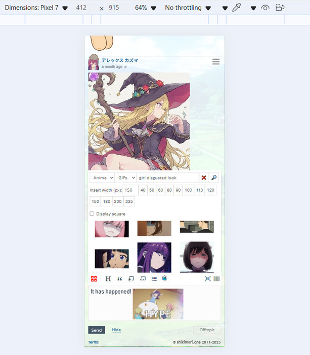 Будем надеяться, когда-нибудь подобный инструмент будет встроен в сам Шикимори, чтобы каждый пользователь мог щитпостить и спамить гифки внести свой вклад в бравое дело распространения аниме-моментов.