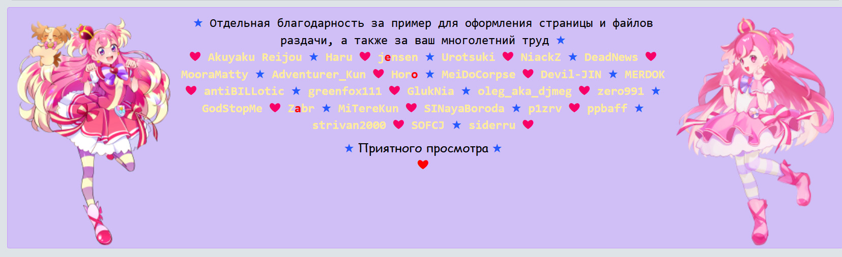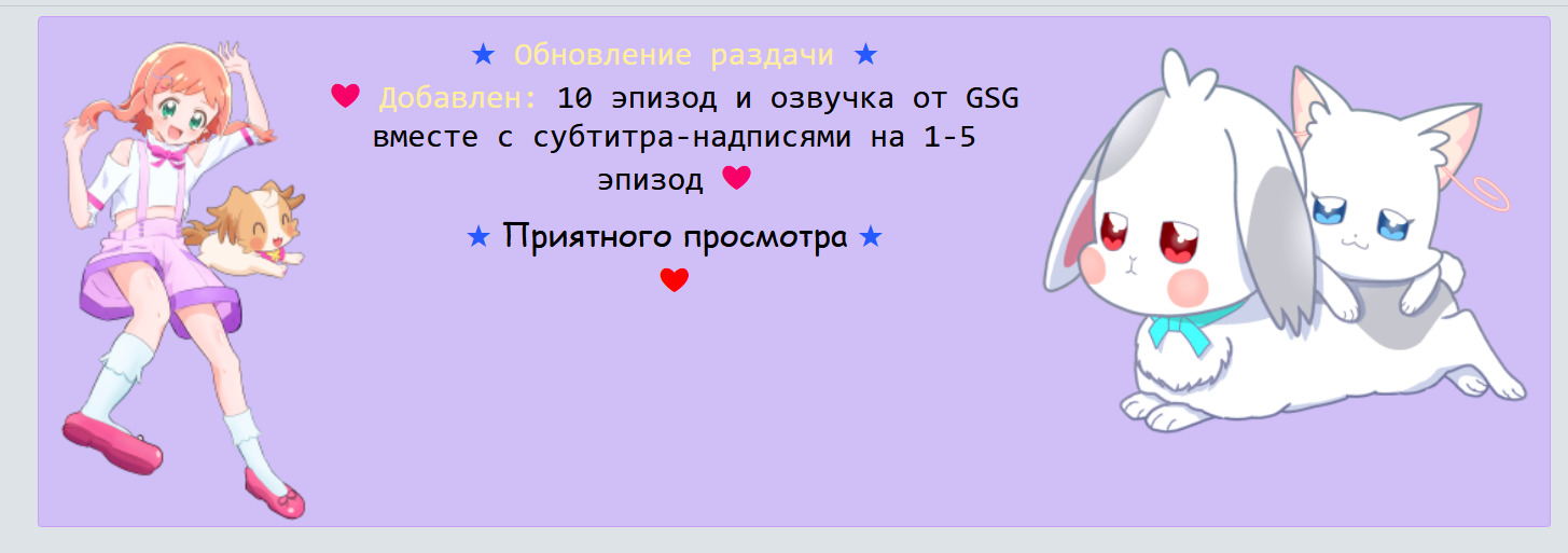 @Алина Серый, @Лизочек, я вообще так-то давно построила теорию, что Кюа Лилиан имеет прямое отношение к юри чисто своим именем. Ибо у нас есть Вандерфул ("ван" с японского "гав") и Нямми ("ня" с японского "мяу") на животных, а среди людей у нас Френдли ("дружба", "дружный", мол собака ー друг человека) и... и причем тут Лилиан? Единственная адекватная связь тут может быть, если авторы реально вложили юрийный подтекст в Маю с самого начала ("юри" с японского "лилия"). А учитывая, что читает главная героиня нового сезона, у меня все сомнения как будто улетучиваются... 1280x719