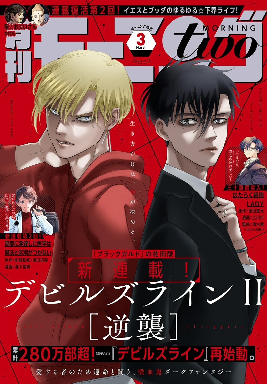 Это было неожиданно, но мне понравилось. Сначала меня смутила рисовка, но уже с первой же главы я влюбилась в Анзая. Это чёрные круги под глазами, худощавое телосложение... очень органично смотрится. После мне понравилась и Цукаса, милая девчушка, а шрам... только помог ей стать болен зрелой. Сюжет про вампиров не нов, но у каждого автора свои вампиры, сдешние вышли неплохими. Даже интересными. Что касается сюжета, то очень даже интересно, в целом. Но я не любитель политических отсылок, а их тут было не мало. Но суть уловила и ладно. Еще один плюс, что в этой манге столько любовных линий, редко такое встретишь. Каждая из них хороша по своему. Правда я считаю, что в жанры надо добавить сенен-ай. Поскольку геев в этой истории предостаточно. За политику сниму 1 бал, так что 9. Советую почитать.