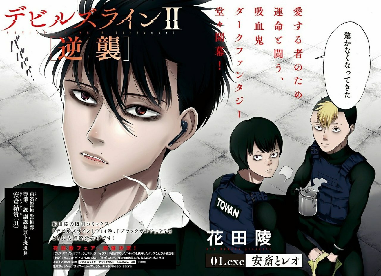 Рановато писать отзыв, но хотелось бы оставить тут хоть какую-то информацию о данном тайтле. На английском переведено всего 17 глав, а на русском и того меньше (7), надеюсь, с анонсом аниме переводчики ускорятся, ведь скорее всего эта манга выльется во что-то неплохое. Гулем мангака явно вдохновлялась, слишком много похожих моментов, взять даже вампира-полукровку, у которого только один глаз черно-красный, классную маску гг на половину лица, хоть предназначение у нее и отличается от масок гулей, и еще кучу всяких мелочей, которые, все же, заметны. Но это точно не пародия и не плагиат. Рисовка во многом хромает, особенно заметны косяки с анатомией в первых 15 главах(сначала думала, может, стиль такой, "чиби" что ли, но нет, оно просто криво да косо), в проработанных моментах порой будто бы узнается стиль Ишиды (того времени когда гуль тоже красотой не блистал), но выходит симпатично, главный герой почти всегда неплохо нарисован, но немного напоминает этого парня. В последнем переведенном материале мангака исправилась и люди стали людьми.