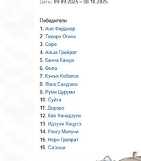 @не_няшка@siverko19,@siverko19@не_няшка, так это не результат. Результаты по стрелочке К результатам@bzyu@kolisya, вот только, увы, Гена знают полтора землекопа... А поскольку моих кандидатов в турнире вообще не было, то меня радует хотя бы наличие в топе Яэки Сакураги@kolisya@SeyMur2, абсолютно так, хотя я тоже многих отсюда не знаю. Я против системы@kost12000@siverko19, рил, спасибо, я потерялся че то@Evil_Crash, Ну хз, каждому своё.@kolisya,Сочувствую. Я всех знаю, хоть принципиально и не голосовал.)