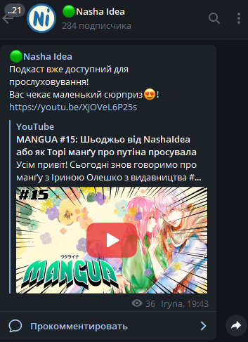 @SmokyWerewolf, это подкаст с директором издательства Nasha Idea, само издательтво кидало ссылку в своём ТГ, может лучше ссылку на пост с ТГ вместо самого подкаста указать в источнике???@SmokyWerewolf@S_K, наверно да, потому что откуда кому-то знать что это подкаст с директором издательства. Особенно когда украинского не знаешь@S_K,@Ару Акисэ@Maxemad, ну хз, судя по тому что у них пара пиратских издательств процветает@S_K@SmokyWerewolf, пираство вообще очень большая проблема у нас, в прошлом подкасте, была тема об этом, некоторые аниме магазины не хотели брать лицуху из за того что в них полки забиты пираткой, но зато комиксшопы, книжные и АШАН с удовольствием лицуху берут и продают@SmokyWerewolf@SmokyWerewolf, хорошо@SmokyWerewolf, это же хентай вроде@SmokyWerewolfТем более в пиратке принты херового качества.